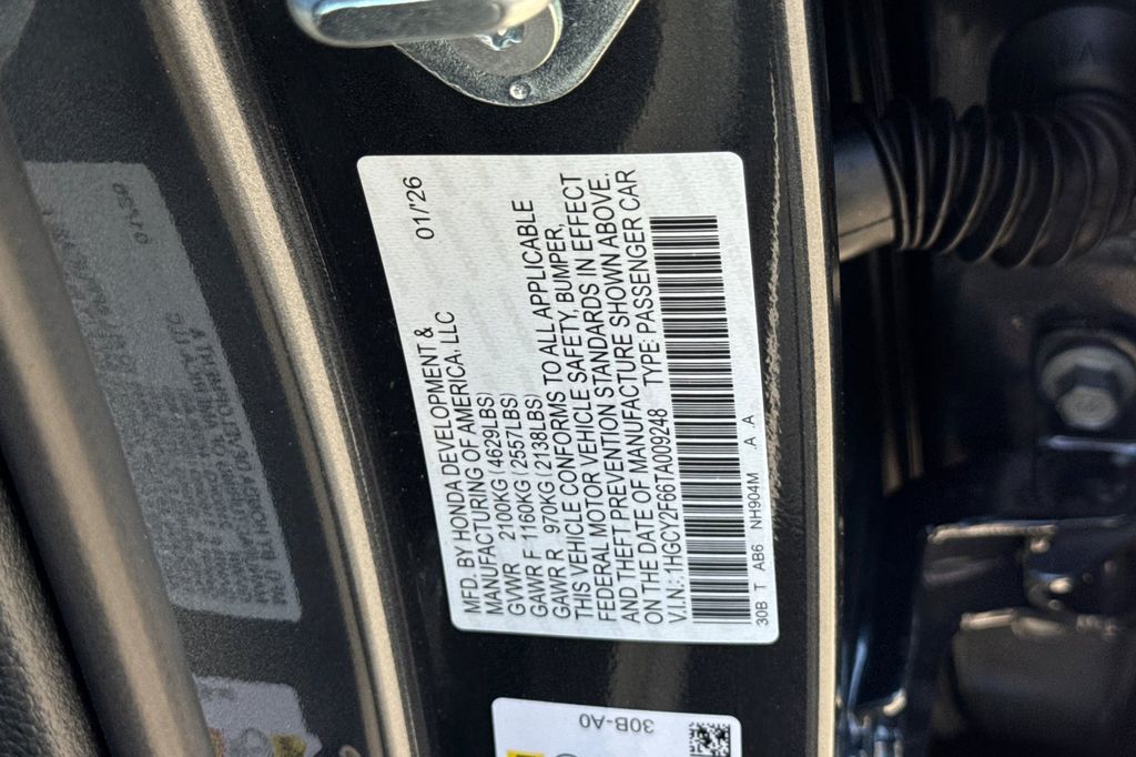 - VIN : 1HGCY2F66TA009248
