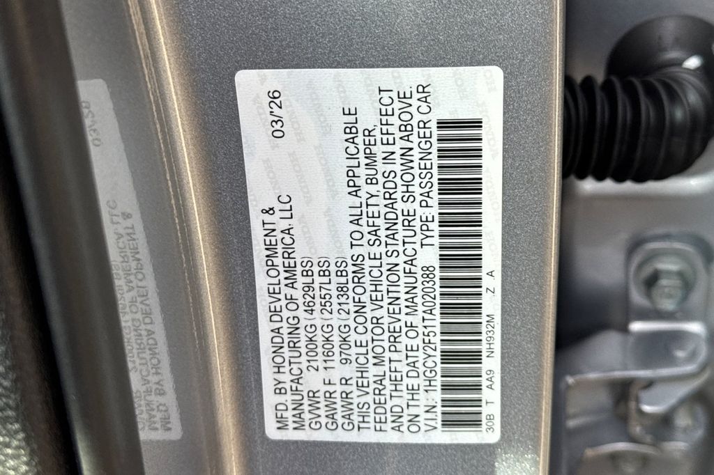 - VIN : 1HGCY2F51TA020388