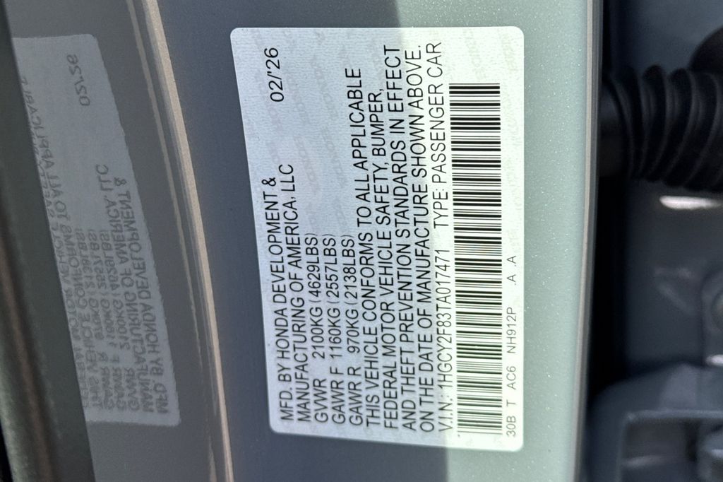 - VIN : 1HGCY2F83TA017471