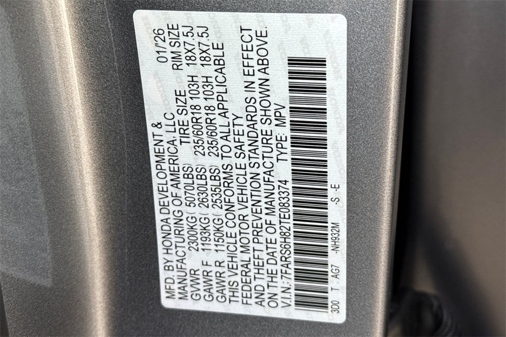 - VIN : 7FARS6H82TE083374