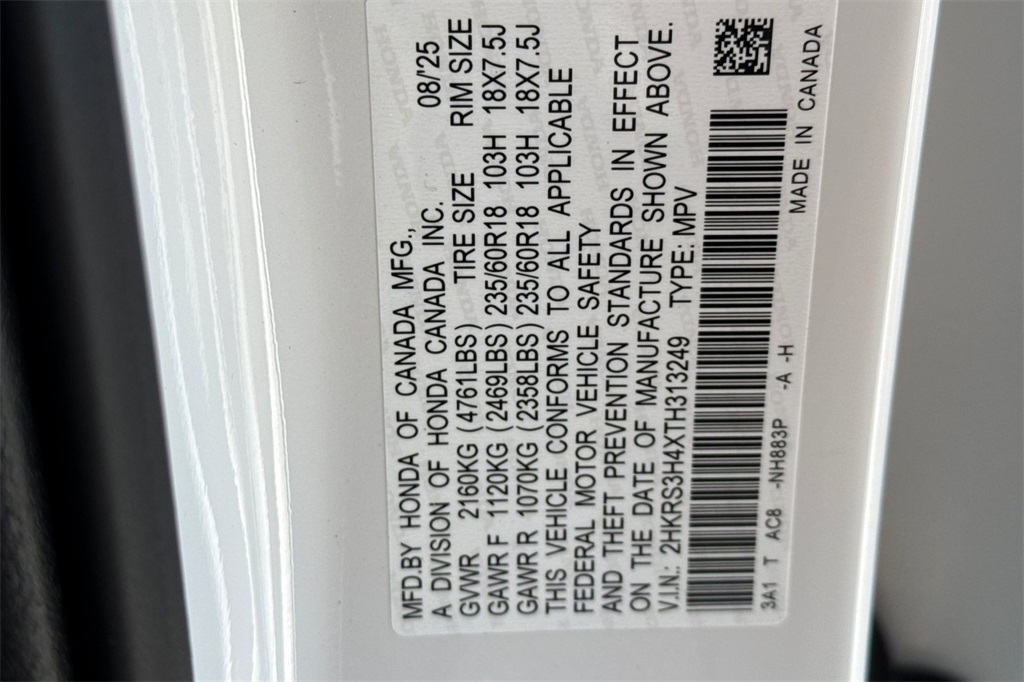- VIN : 2HKRS3H4XTH313249