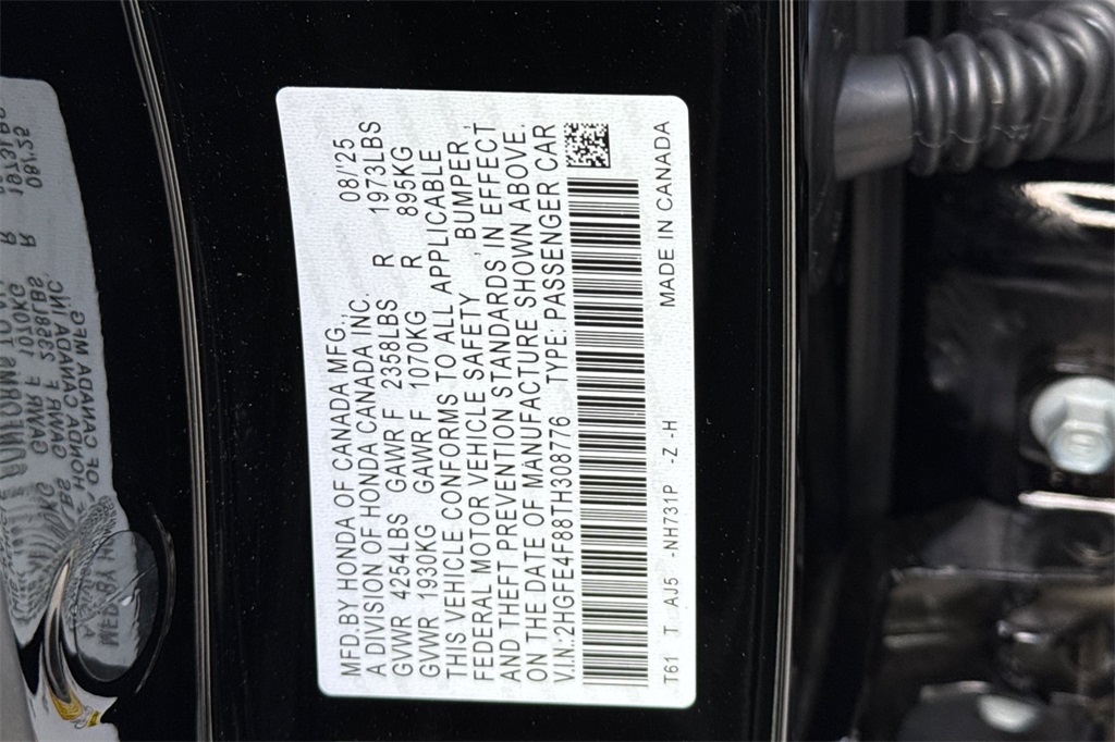 - VIN : 2HGFE4F88TH308776