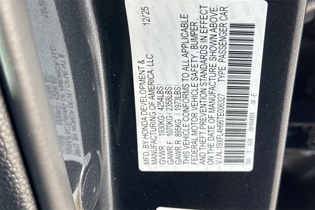 - VIN : 19XFL4H96TE006327
