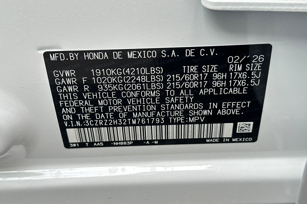 - VIN : 3CZRZ2H32TM761793