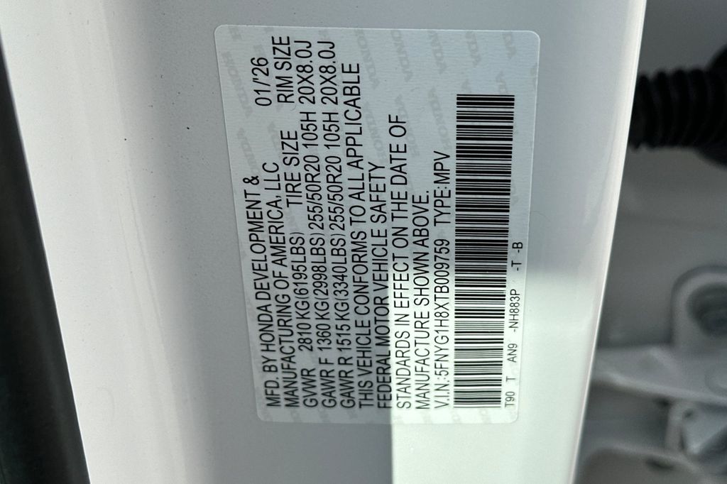 - VIN : 5FNYG1H8XTB009759