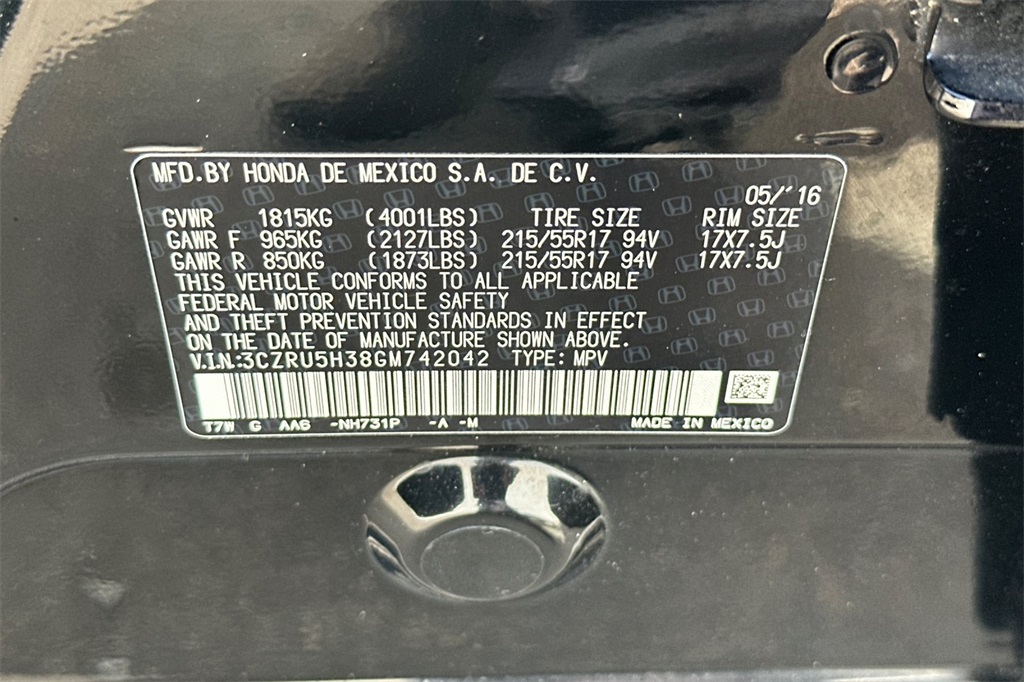 - VIN : 3CZRU5H38GM742042