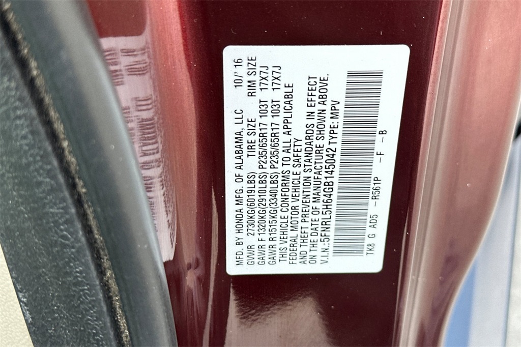- VIN : 5FNRL5H64GB145042
