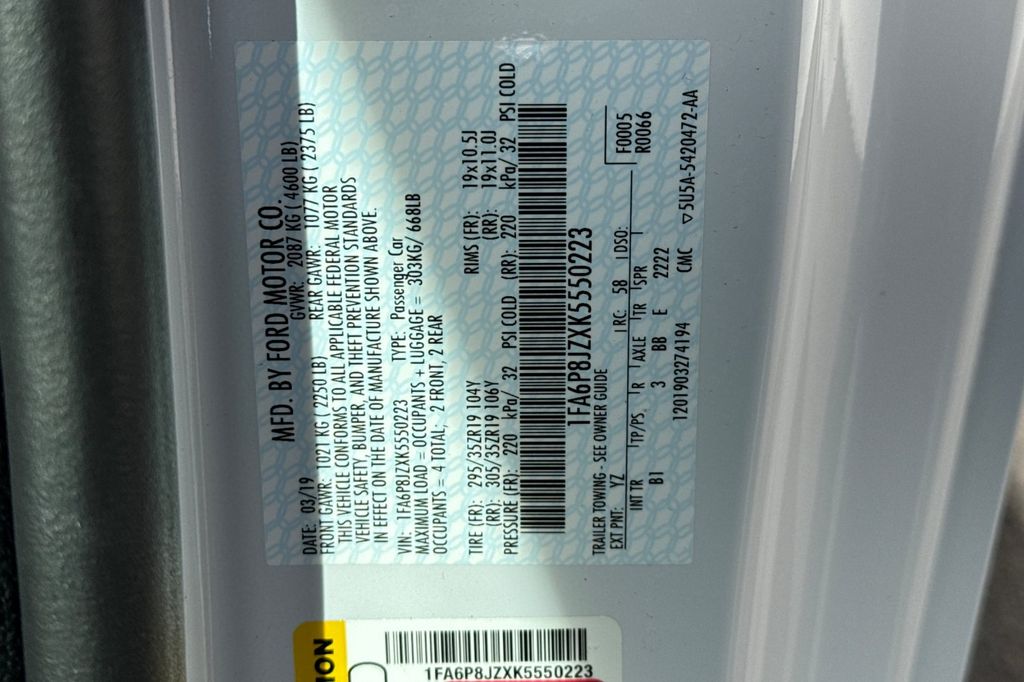 - VIN : 1FA6P8JZXK5550223