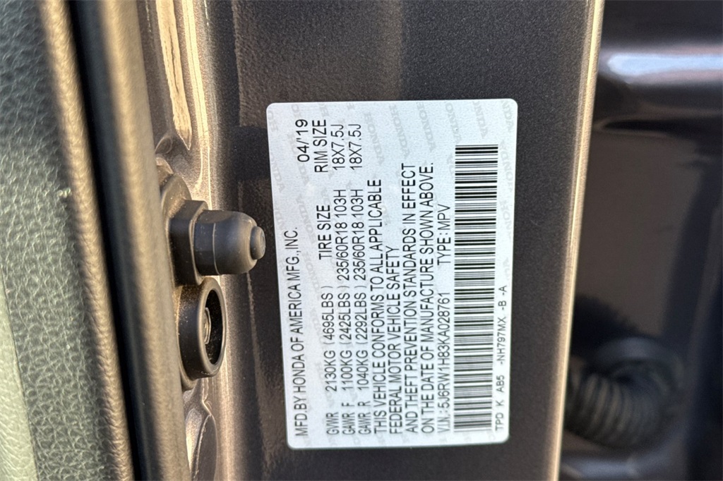 - VIN : 5J6RW1H83KA028761