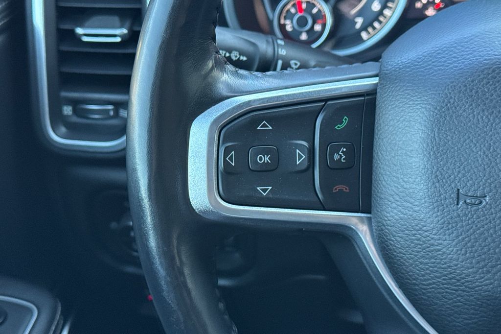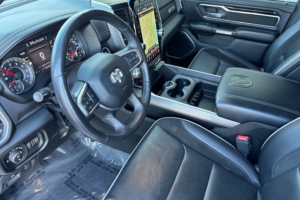 Comfort is prioritized in the Ram 1500, featuring heated seats for the driver and front passenger, ensuring warmth during colder months. The heated steering wheel adds an extra layer of comfort, allowing for a firm grip without the need for bulky gloves. The luxurious leather seat upholstery enhances the interiors aesthetic appeal while being easy to maintain.