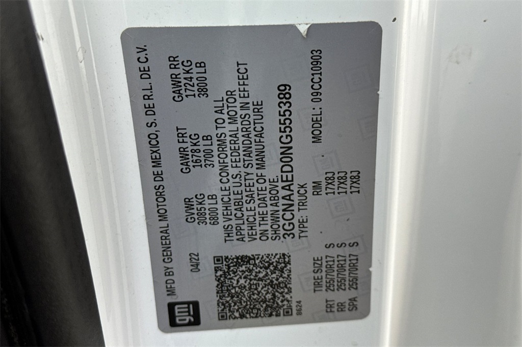 - VIN : 3GCNAAED0NG555389