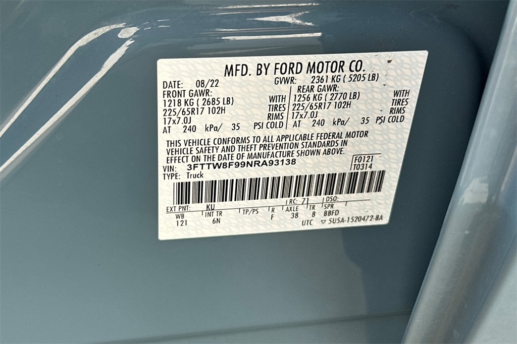- VIN : 3FTTW8F99NRA93138
