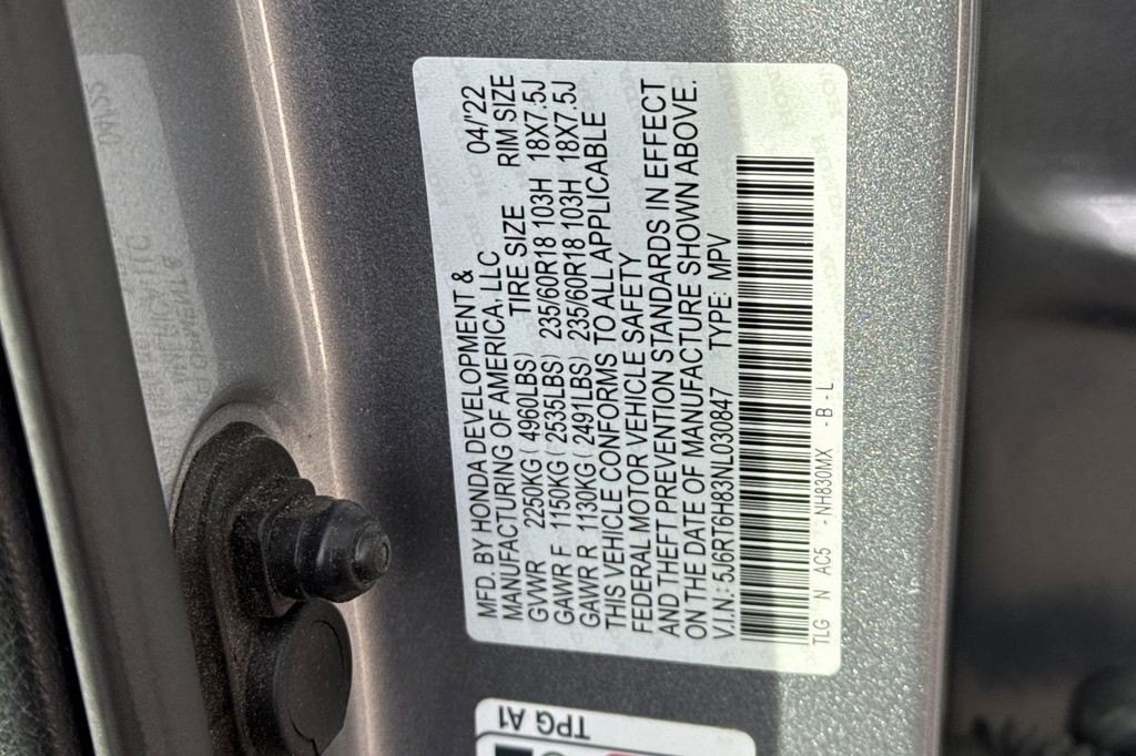 - VIN : 5J6RT6H83NL030847