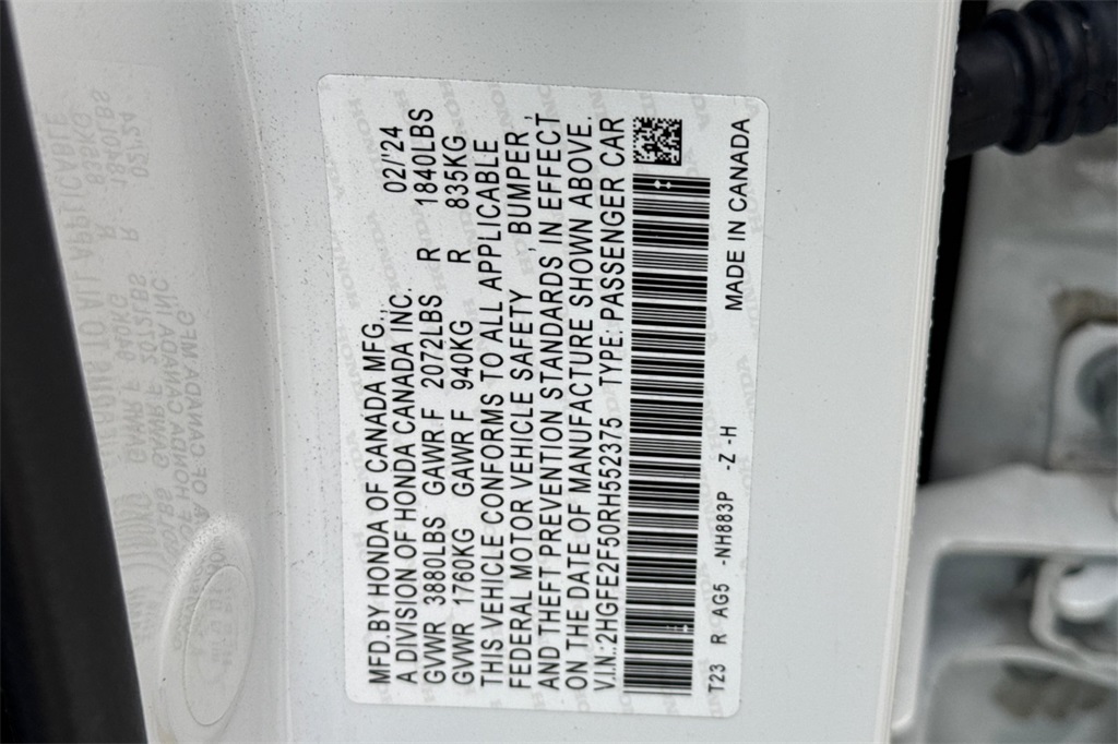 - VIN : 2HGFE2F50RH552375