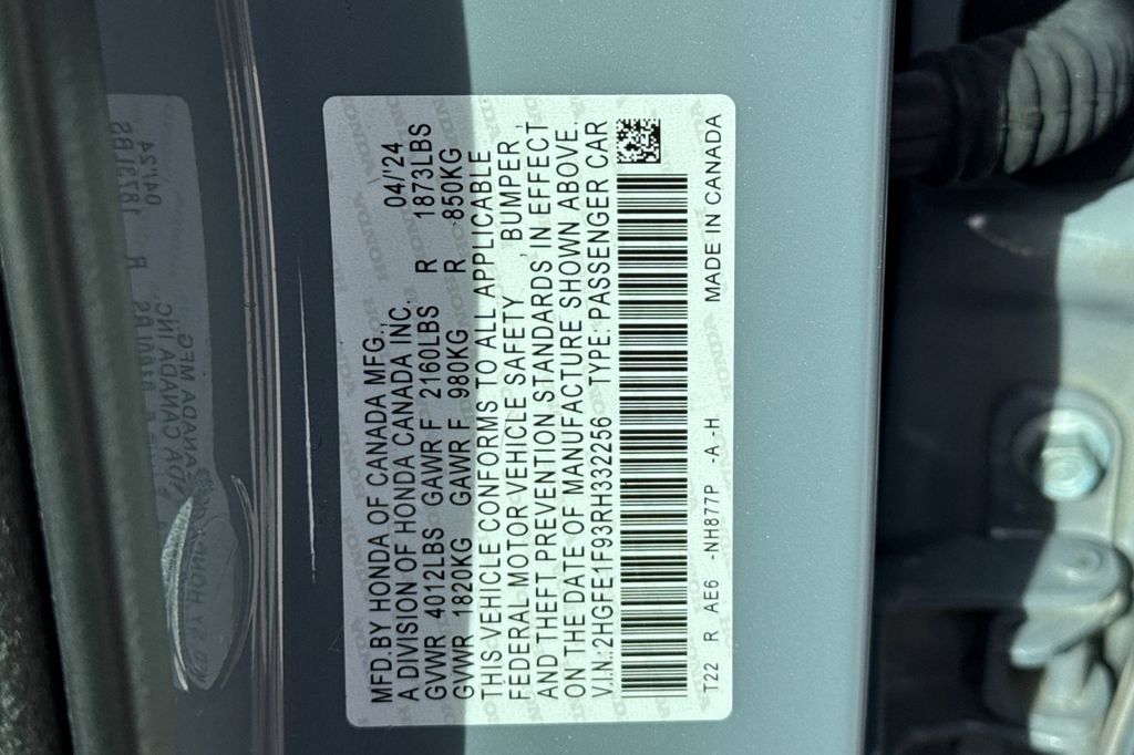 - VIN : 2HGFE1F93RH332256