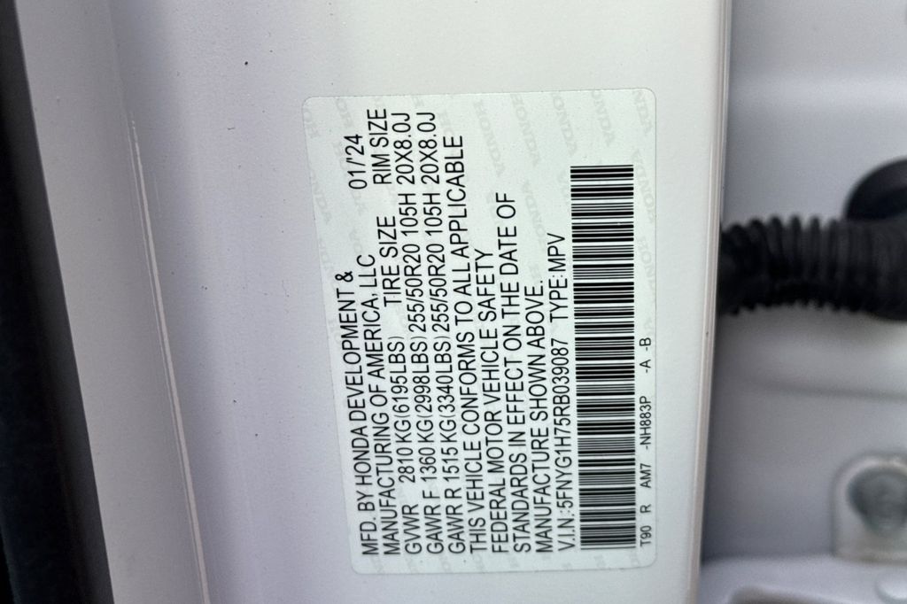 - VIN : 5FNYG1H75RB039087